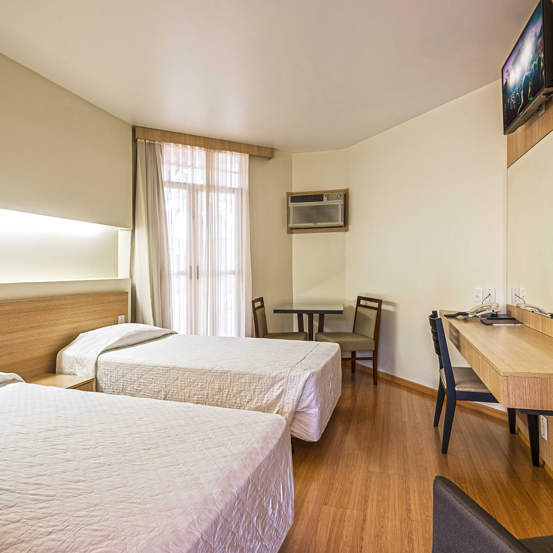 Com aproximadamente 20m², a acomodação Standard oferece o equilíbrio ideal entre conforto e praticidade, sendo perfeita para até duas pessoas. O ambiente é equipado com cama de casal, piso vinílico, ar-condicionado, Smart TV de 43”, cofre digital, minibar, telefone, mesa de trabalho e espelho de corpo inteiro. Conta ainda com janelas e portas antirruído, que garantem mais tranquilidade durante a estadia.