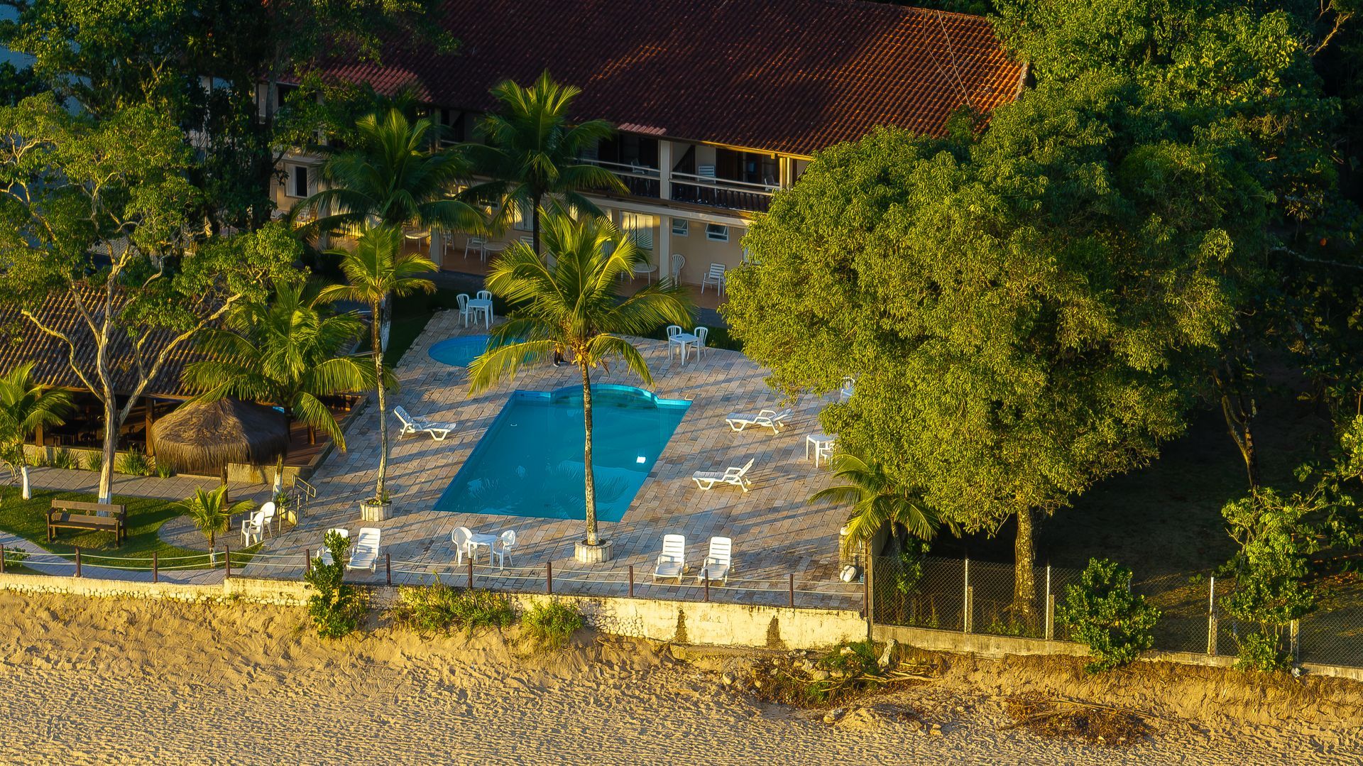 Com acesso direto à areia (“pé na areia”), o hotel conta com piscina e bar a apenas 5 metros da praia, proporcionando uma vista privilegiada de um dos mais belos pôr do sol do Brasil.