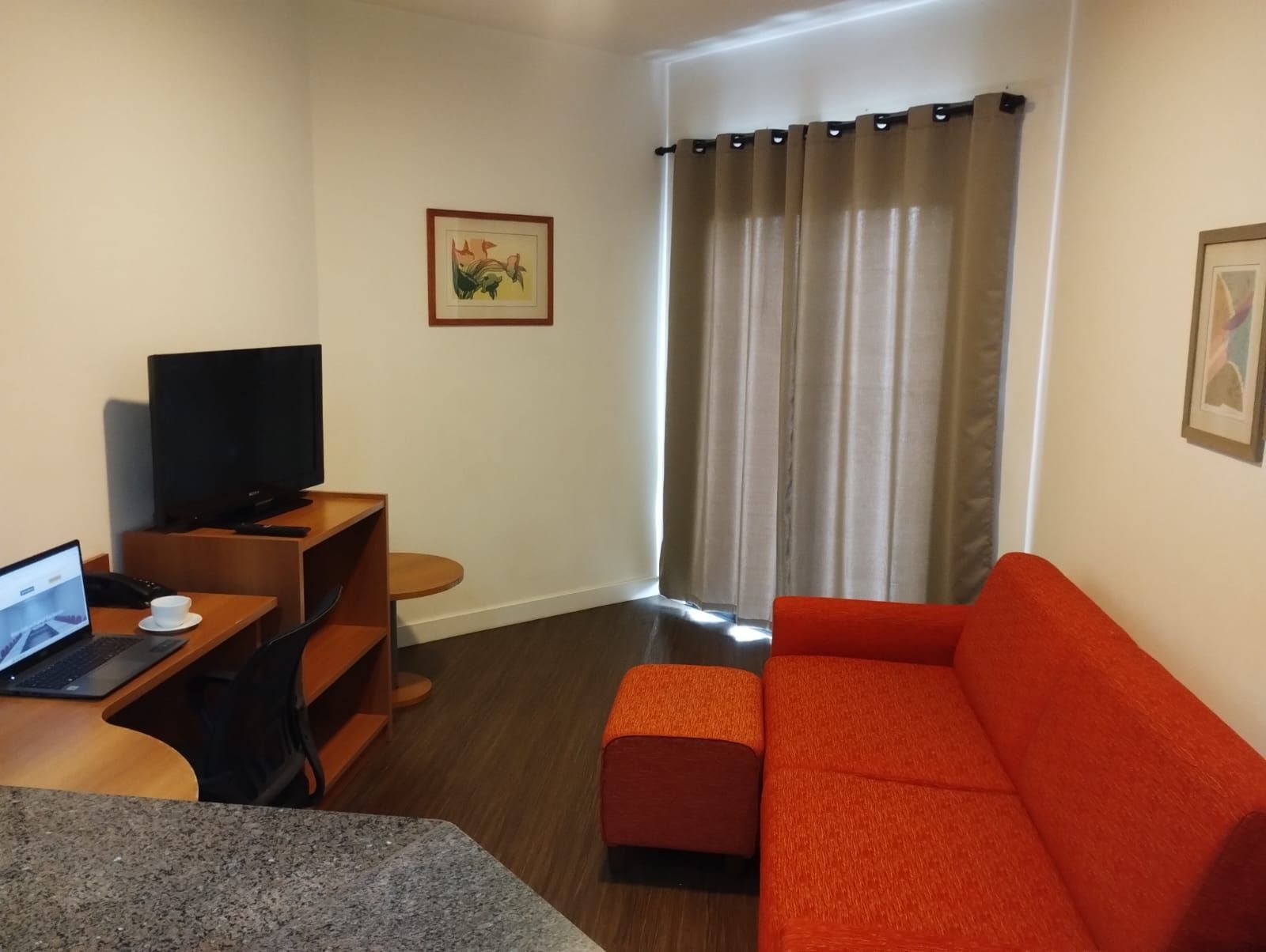 Os apartamentos são os maiores da cidade, de 36m² a 52m², com 3 ambientes: quarto, sala e cozinha americana. Ideal para longa permanência, com estrutura de uma residência completa. Os apartamentos possuem ar condicionado, bancada de trabalho, TV LED com canais por assinatura, kit de cozinha, fogão, frigobar e uma ampla sacada. O Flat possui completa estrutura de lazer com piscina, sauna, fitness center, vista panorâmica da cidade da cobertura. Toda quinta e sexta- feira é realizada a manutenção da piscina das 09h às 11h, após esse horário a mesma está liberada para uso. A estrutura de eventos conta com 4 salas de com capacidade para até 160 pessoas em auditório. Venha desfrutar da incrível experiência e hospitalidade oferecida pela Summit Hotels!